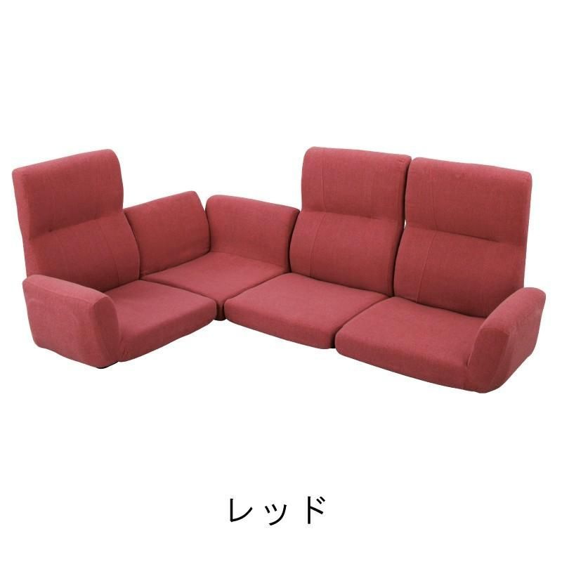 ソファー 3人掛け フロアソファー ロータイプ コーナー L字 ハイバック レッド ブラウン