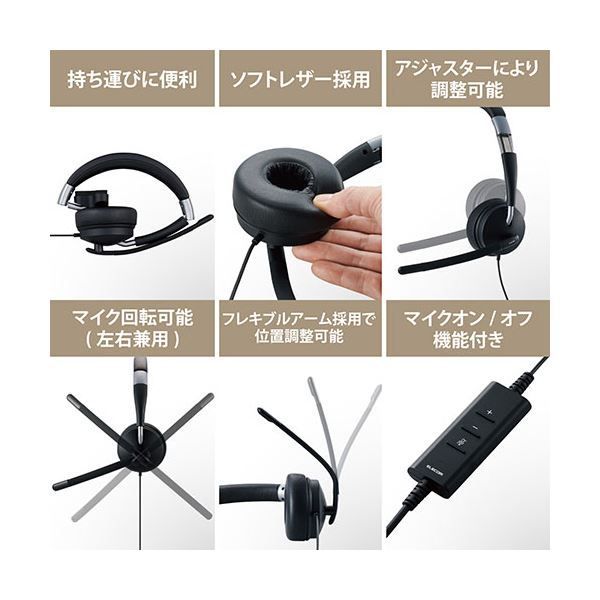 エレコム デュアルマイクノイズリダクション有線ヘッドセット USB 片耳 ブラック HS-