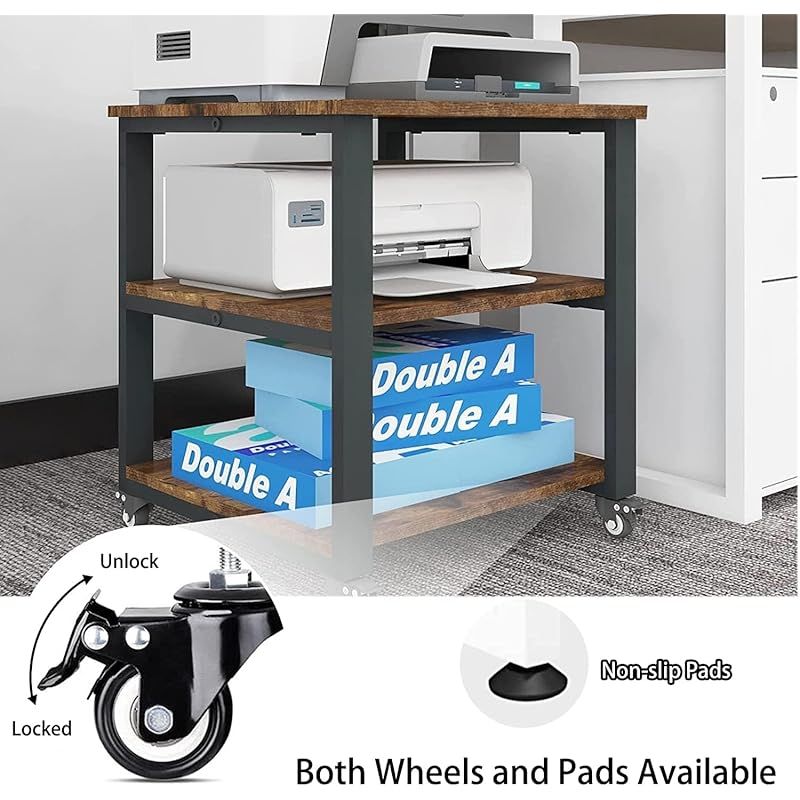 【安定性&耐久性に優れた】プリンター ラックは二重層構造デザインを採用して、天板と底板に一本のベアリングロッド追加したことで、、安定性に優れ、総耐荷重はなんと100kg。プラスチックキャスターの代わりに、ロック付き工業用キャスターを採用して、耐荷重が強く、耐久性に優れた。