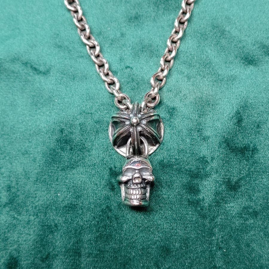 頭蓋骨後頭部に家紋のロゴマークを彫ったペンダントトップ