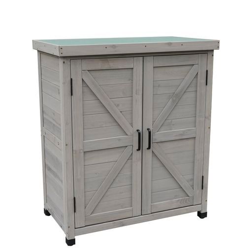 小型木製木製物置屋外天然木杉物置き倉庫防水観音開き棚板付きウッドストッカーウッド小屋収納ガーデンシェッドガーデン物置屋外収納園芸用品ベランダ庭グレー