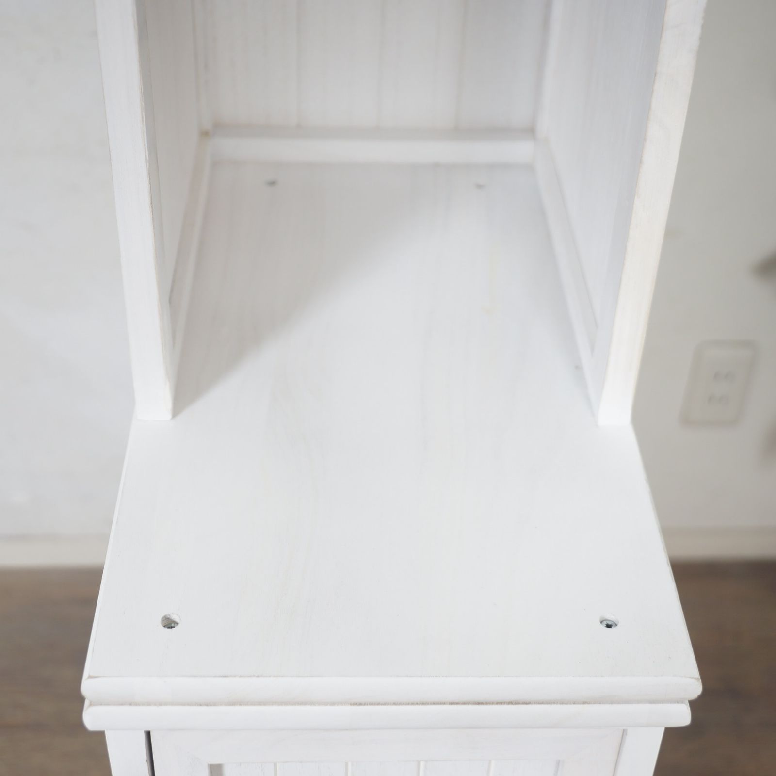 K 完成品 シャビーシック 隙間収納 キャビネット 桐材 幅25 cm 姫系 ホワイト 飾り棚付き 白家具 多目的ラック スリムチェスト 白 アウトレット