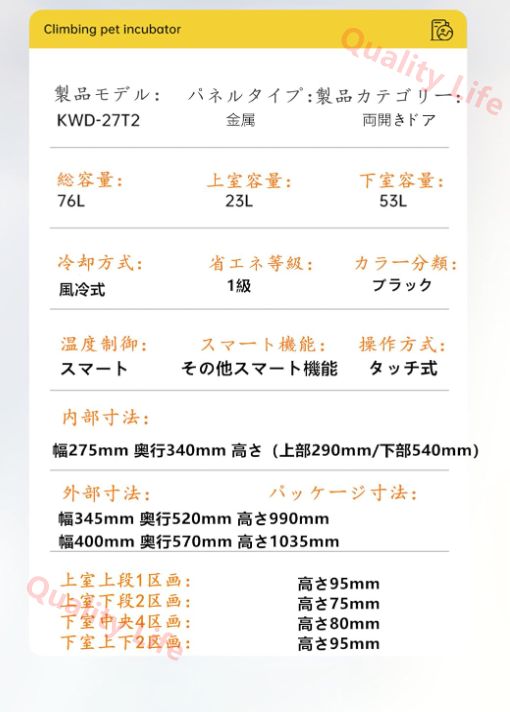 【小さなフットプリント】:両生類爬虫類インテリジェント 23Lの製品の体積は25.4*51.1*37.8、重量は約10KGで、49Lの製品の体積は42*49.5*51.8、重量は約15KGで、76Lの製品の体積は52*34.5*99、重量は約20KGで、スペースを節約するために自由に配置できます。