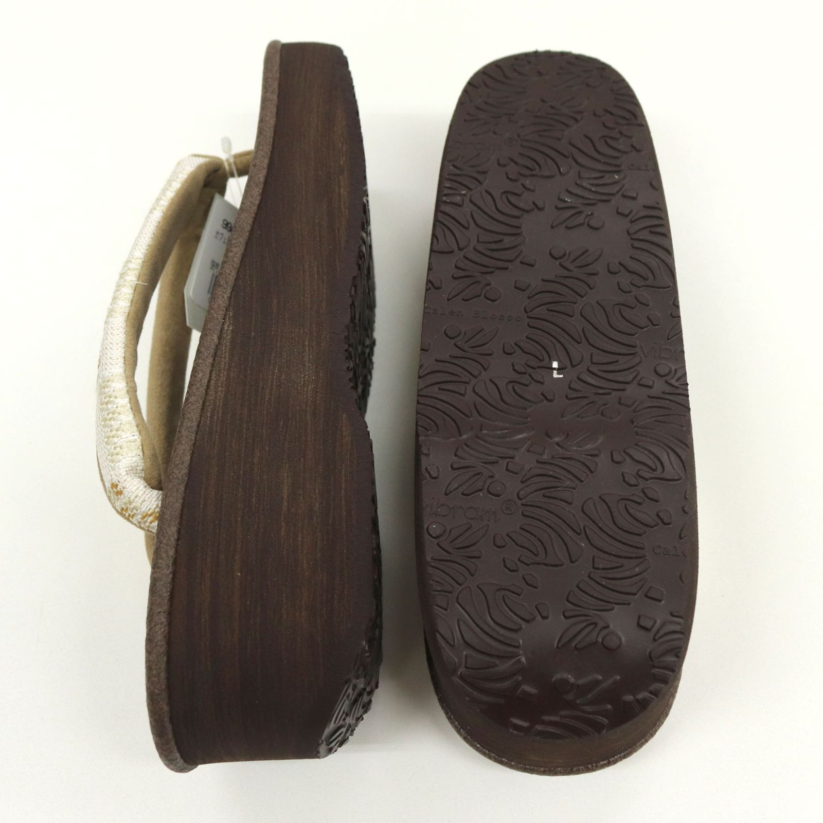 底にすげ用の穴がないため、路面の水が伝わって花緒の先つぼが傷むことがありません。ちょうどいいクッション性で疲れにくく、お薦めでございます。