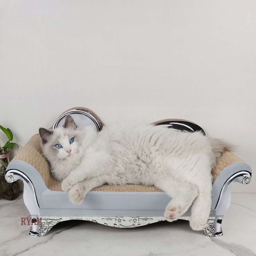 爪とぎ ソファ型 キャットソファ キャットベッド ペットベッド 猫ベッド おしゃれ ゴージャス かわいい リッチ ゆったり リラックス 耐久性 グレー 段ボール