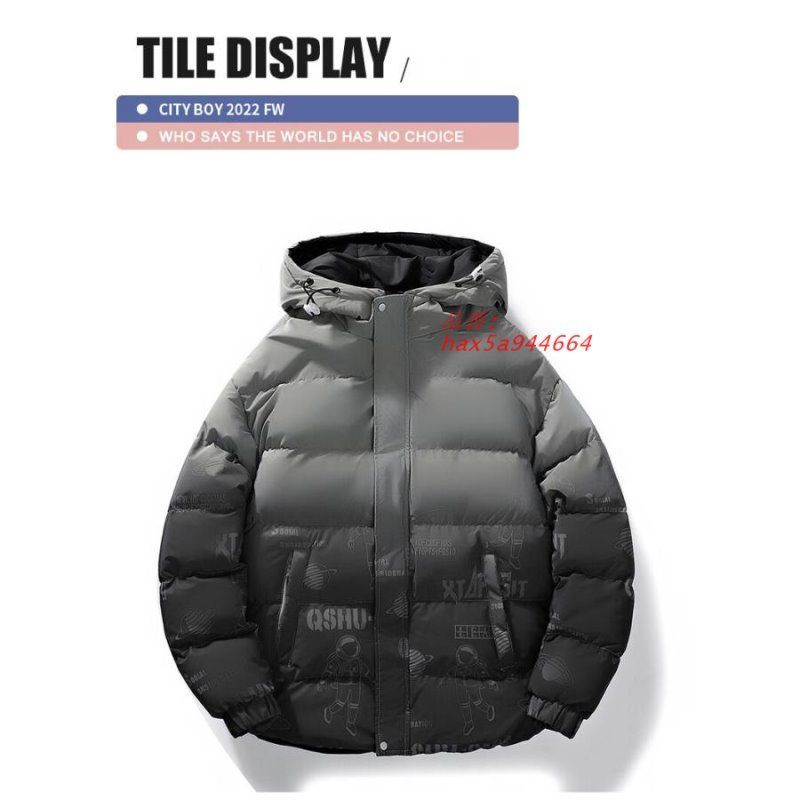 中綿コート メンズ 中綿ジャケット アウター フード メンズアウター タイリッシュ 柄物 冬 大きいサイズ 冬服 グラデーション英文字 hax 5 a 944664
