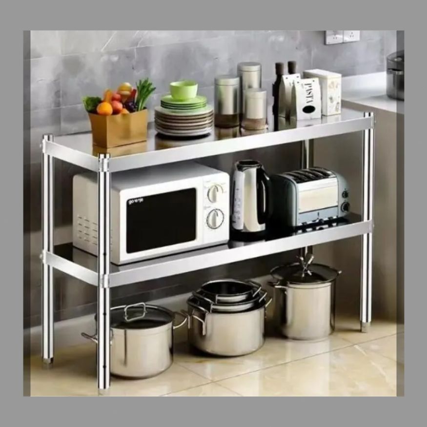 新入荷 実用 ステンレス製のキッチンラックを厚くした2段の床置き収納棚電子レンジオーブン家庭用収納棚
