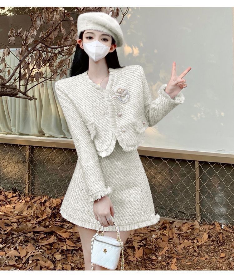 セットアップ ツイード レディース ジャケット スカート 秋冬 韓国ファッション 上下セット レディースファッション スーツ お呼ばれ セクシー xxf 08