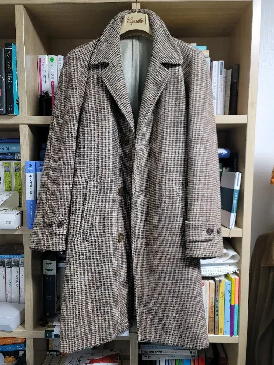 ラペルが美しくロールしており、ヴィンテージのツーパネルですがよく織られたパターンに生地も柔らかい方なので、ショルダーラインも良いです。生地の色合いもオールドすぎない範囲で昔の風情が感じられます。何よりも最近ますます低級になっていくツイードコートでは見られない上質な厚手の生地なので本当に暖かいです。持っているコートの中で保温性は指折りです。それでいて重さは比較的軽いです。