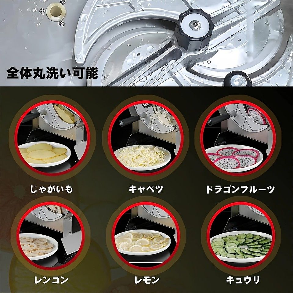 この千切りスライサーは、ご家庭でも業務用でも活躍する、高品質なキッチンツールです。硬い野菜も楽々スライスでき、日々の料理の幅を広げます。特に、長い食材や大きな食材もそのままカットできるリターンタイプなので、じゃがいも、キャベツ、れんこん、レモン、きゅうりなど、様々な食材の調理時間を大幅に短縮できます。料理初心者の方から、手早く調理したい方まで、すべての方におすすめです。