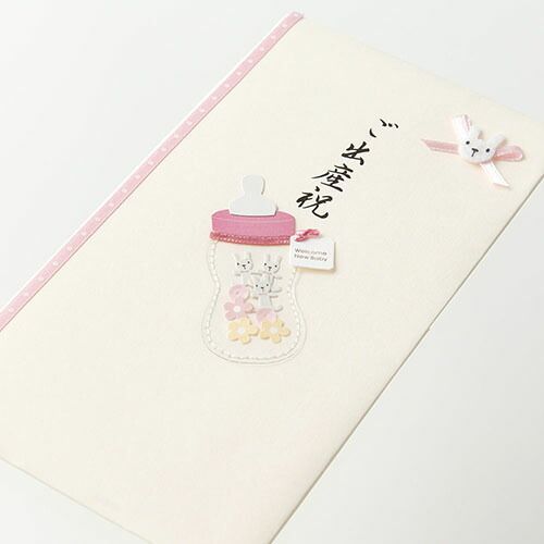 詳細情報哺乳瓶の中に小さなウサギやスパンコールが入っている金封です。