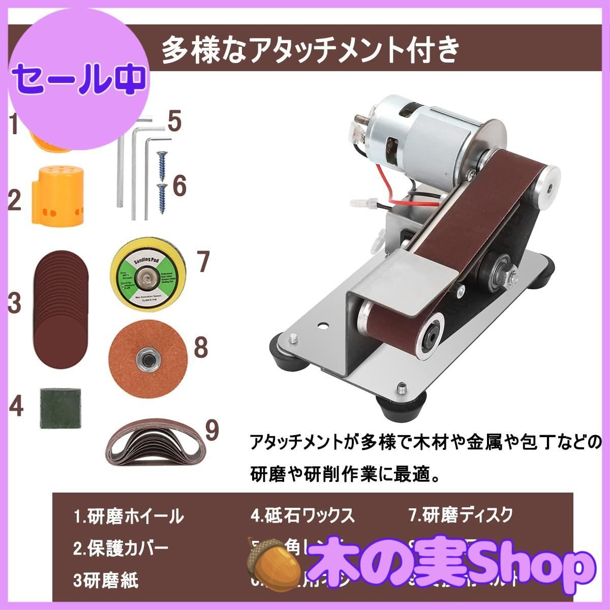 EC Hometec ベルトサンダー 小型 電動ベルトサンダー 7段階変速 正逆回転モード切替 ベルトサンダー 卓上 ミニタイプ 4000-9000rpm 木材や金属や包丁の研磨作業 研削 DIY作業 ベルト幅30cm 交換用ベルト付き