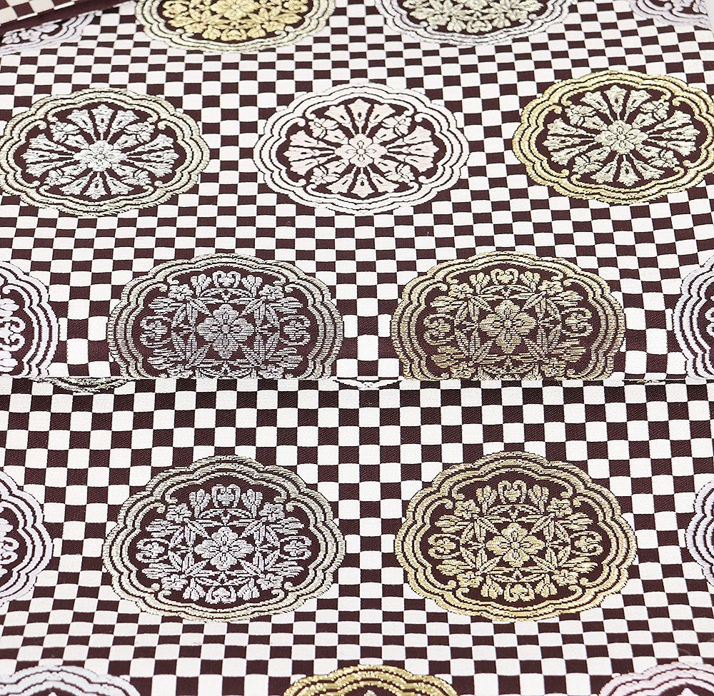 礼装用 袋帯 正絹 小豆色 白 市松模様 金 銀 華文 Mサイズ F 8345 レディース シルク ギフト フォーマル 30代 40代 50代