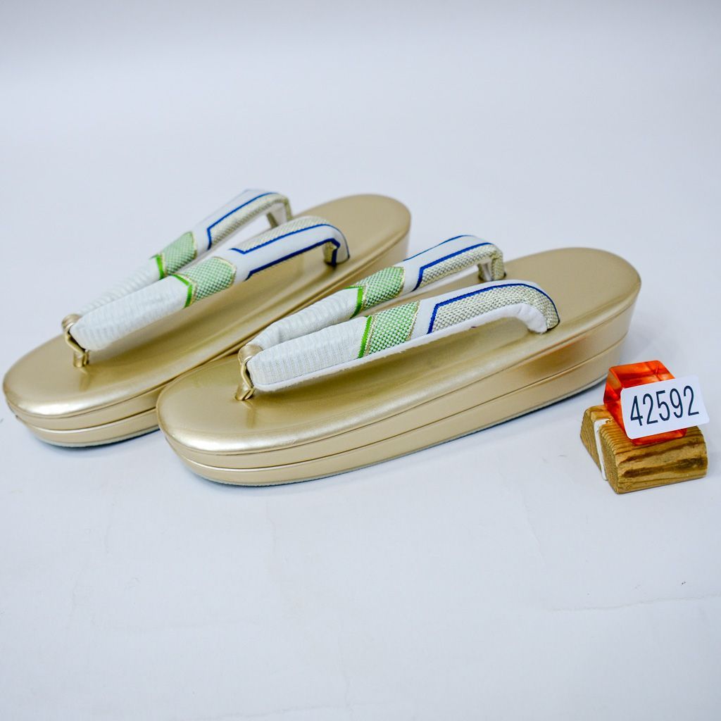 草履バッグセット 帯地 二段 フリーサイズ 24 cm 適合足サイズ22.5 cm~24.5 白色×金色 振袖 成人式 結婚式 NO 42592
