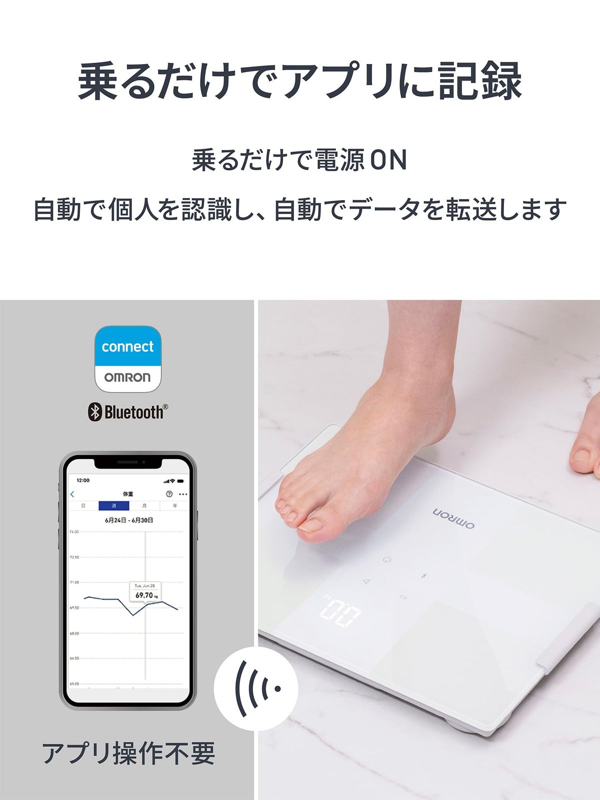オムロン 体重 体組成計 カラダスキャン ホワイト KRD-503 T-W スマホ連動 データ自動転送 自動認識 乗るだけで測定開始 内臓脂肪レベル 体脂肪率 BMI 骨格筋率 透明電 モデル