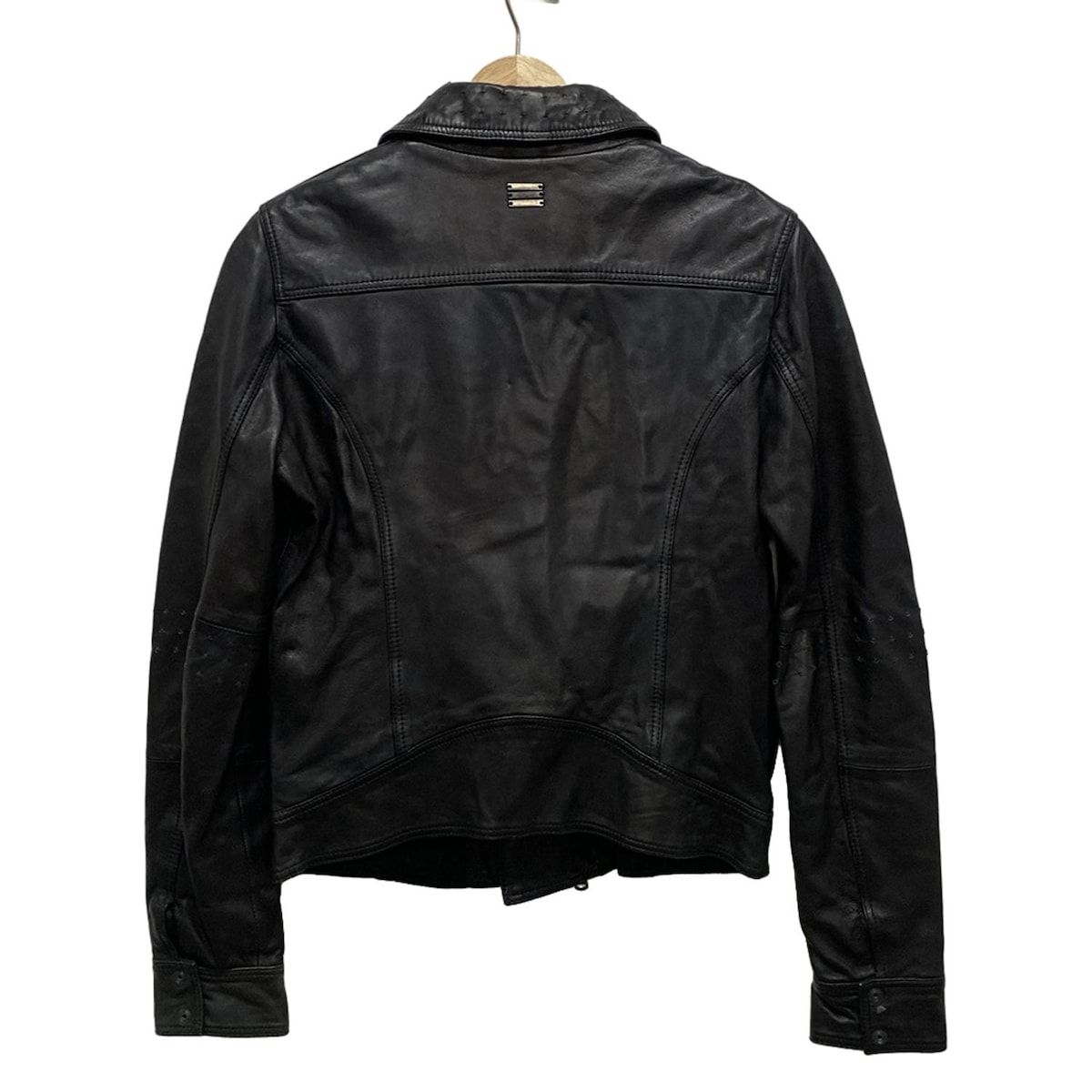 DIESEL ディーゼル ライダースジャケット サイズS レディース - 黒 長袖 レザー パンチング ジップアップ 秋 冬