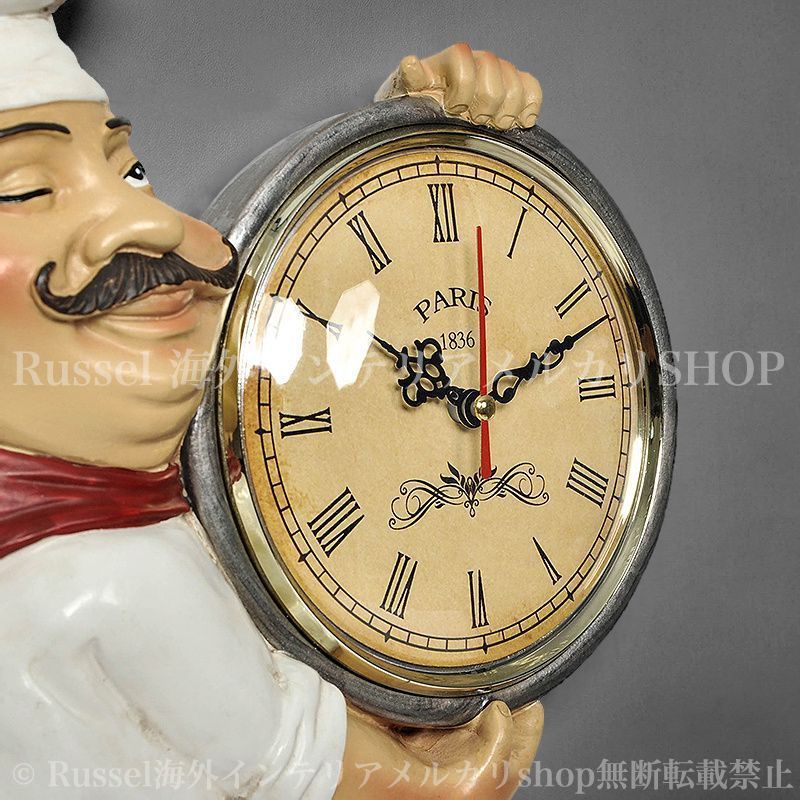 壁掛け 時計 ヴィンテージ風 シェフ 装飾 静音 アナログ おしゃれ かわいい インテリア 北欧 レトロ風 掛け時計 ウォール クロック 4-7