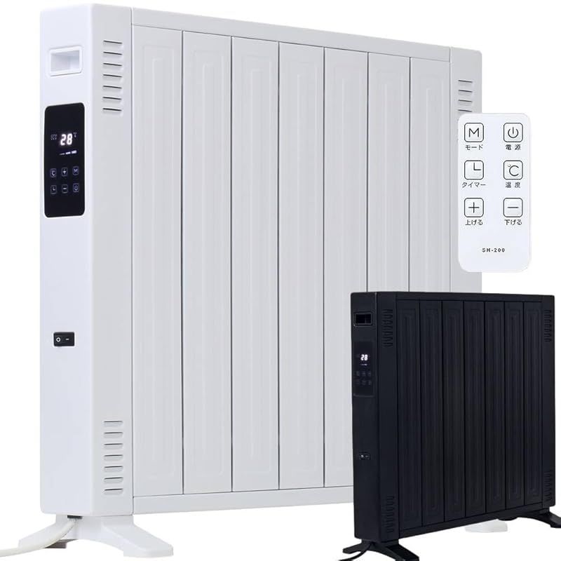 iimono 117 オイルレスヒーター 1200 W リモコン付き 省エネ 燃料不用 ノンオイルヒーター 電気ストーブ 速暖 軽量 ハイパワー 安全装置付き タッチパネル操作 電気ヒーター ホワイト 1