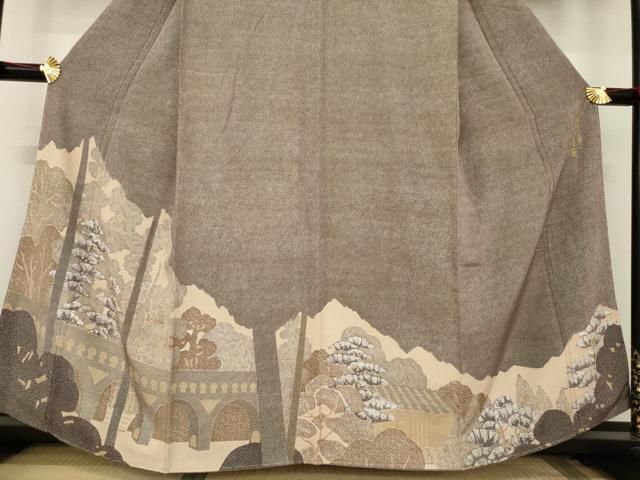 平和屋着物 創業明治元年 京の老舗 小糸染芸 小糸敏夫 訪問着 渡り橋風景文 浜ちりめん 反端付き 正絹 ck