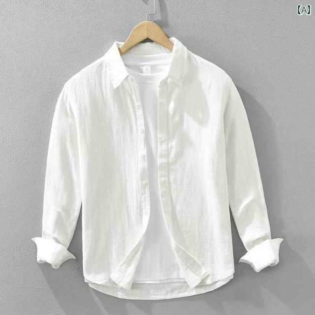 XL メンズ ファッション 服 男性用 オシャレ シンプル 大人 かっこいい 大きいサイズ ストリート 紳士服 ラミー 無地 長袖 シャツ 夏 レトロ 綿 麻 マルチ カジュアル リネン
