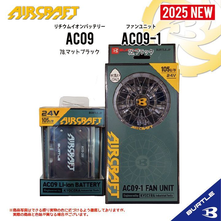 AC 09マットブラック×AC 09-1ブラック バートル エアークラフト リチウムイオンバッテリー×ファンユニットセット