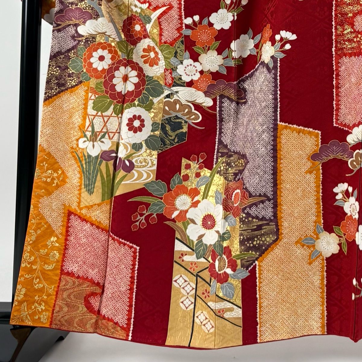 振袖 身丈160.5 cm 裄丈68 L 袷 草花 流水 金糸 金彩 赤 正絹 秀品