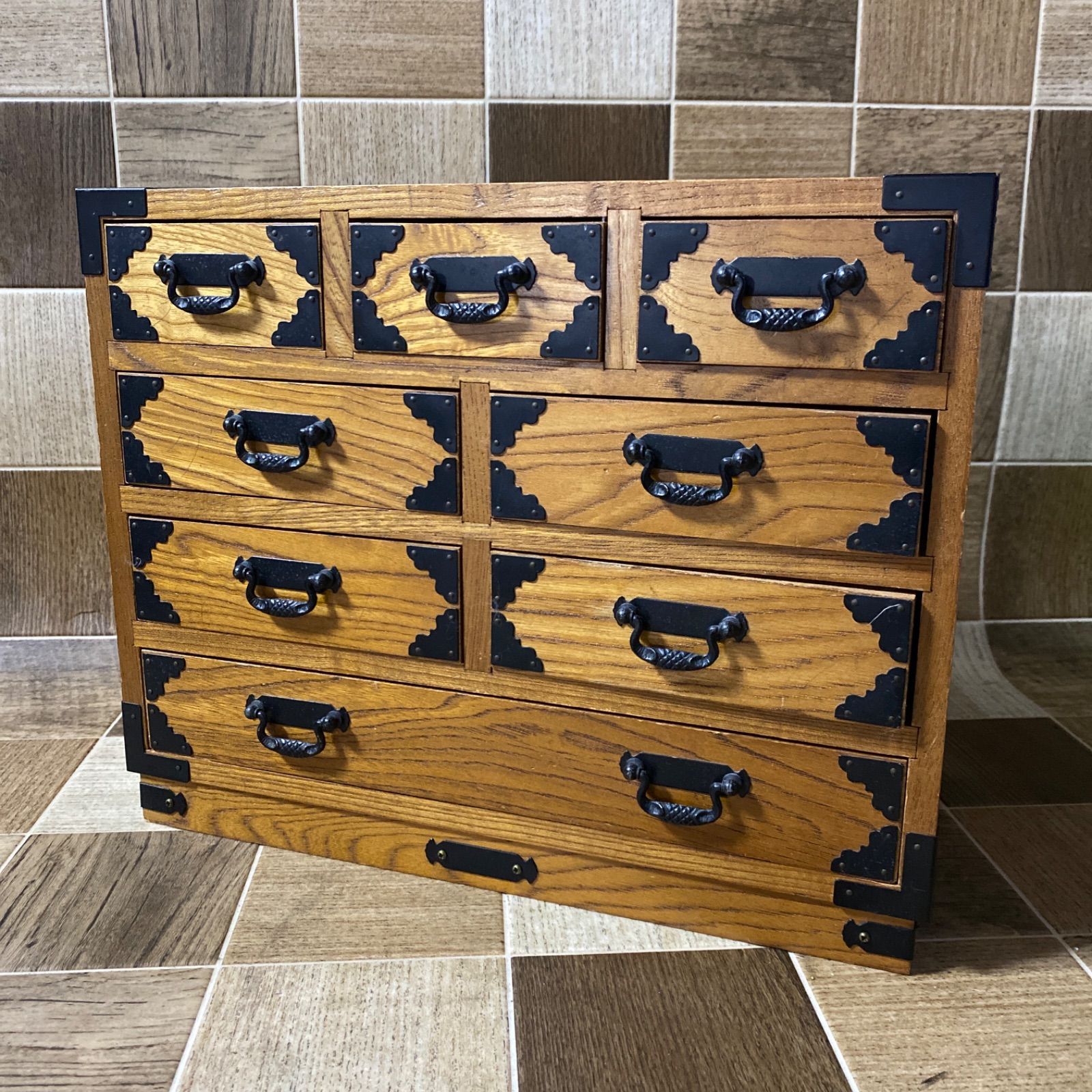 木製 8杯 小箪笥 小引出し 小物入れ ミニタンス 民芸家具 道具箱 アクセサリーケース 昭和レトロ ビンテージ クラシカル 古道具 古民家 古家具 ナチュラル 和風 和製アンティーク インテリア雑貨