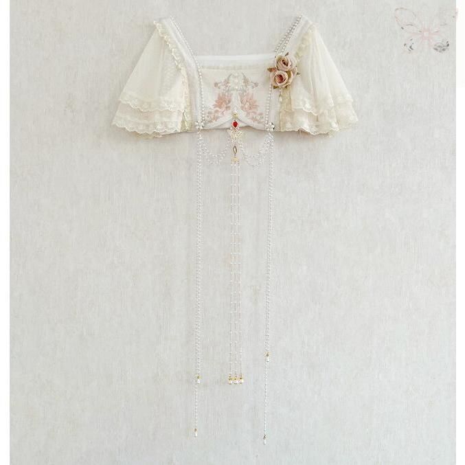 漢風 ロリータワンピース ロング丈 ロリータ福 ゴージャス レース 羽織 ボレロ 真珠付き キャミソールドレス 重ね重ね 改良版漢服 ド