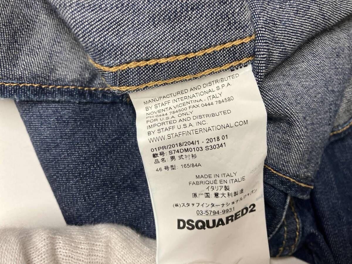 ディースクエアード ダンガリーシャツ フルロゴパッチ デニムシャツ イタリア製 サイズ46 インディゴブルー