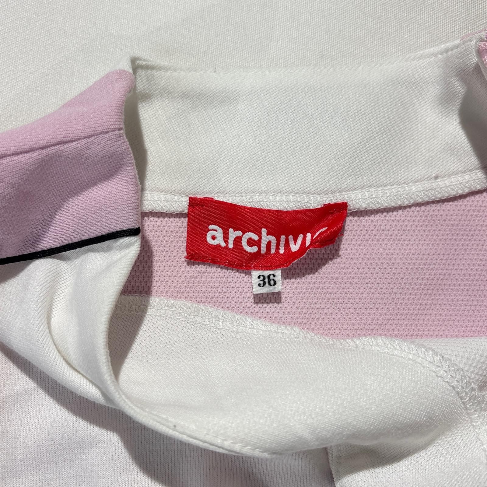 レディース アルチビオ archivio 半袖シャツ 36 S 白×ピンク ホワイト ボトルネック ハーフジップ