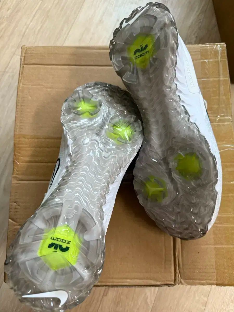 ナイキズームインフィニティフライニットゴルフシューズは白です。底にスタッドが付いているので、グリップが良さそうです