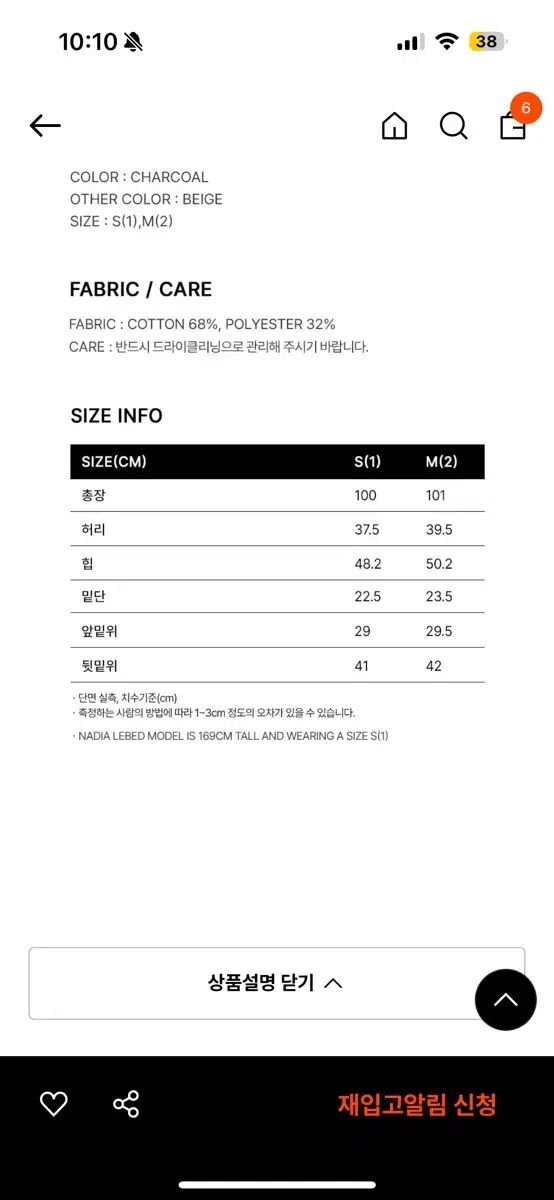 チャコールは1サイズで、写真の後ろにサイズ表があります。