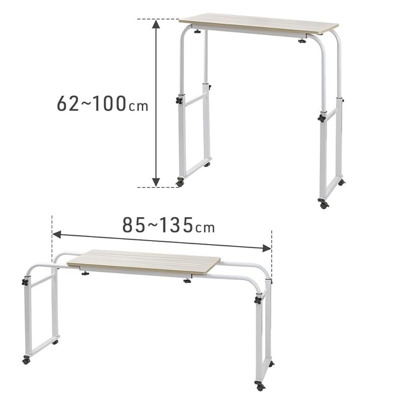 商品名:【新品】 Bonarca ベッドテーブル 介護 用 伸縮 【幅:シングル~セミダブル対応】 昇降式 高さ調節 【高さ:62~100cm】 食事 オーバーベッドテーブル キャスター付き シングル セミダブル ベッド 対応 ベッド用 デスク 伸縮式 サイドテーブル