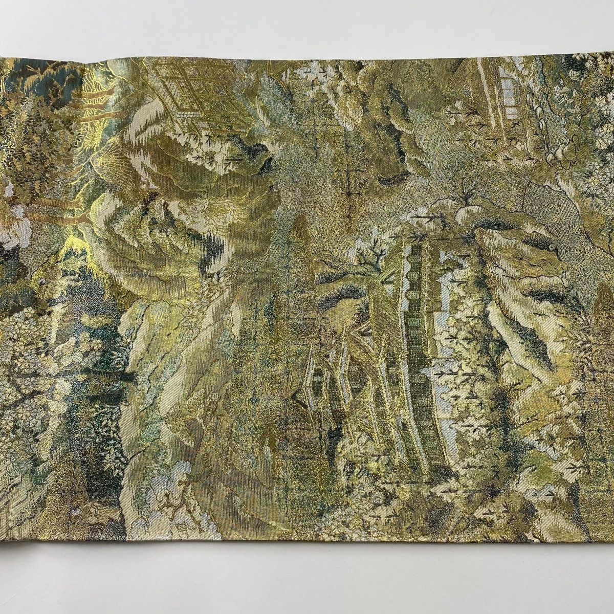 丸帯 姫路城 樹木 箔 金色 お太鼓柄 正絹