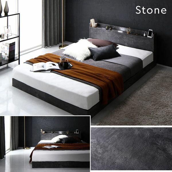 ベッド 低床 ロータイプ すのこ 木製 LED照明付き 宮付き 棚付き コンセント付き シンプル モダン ブラック シングル ベッドフレームのみ