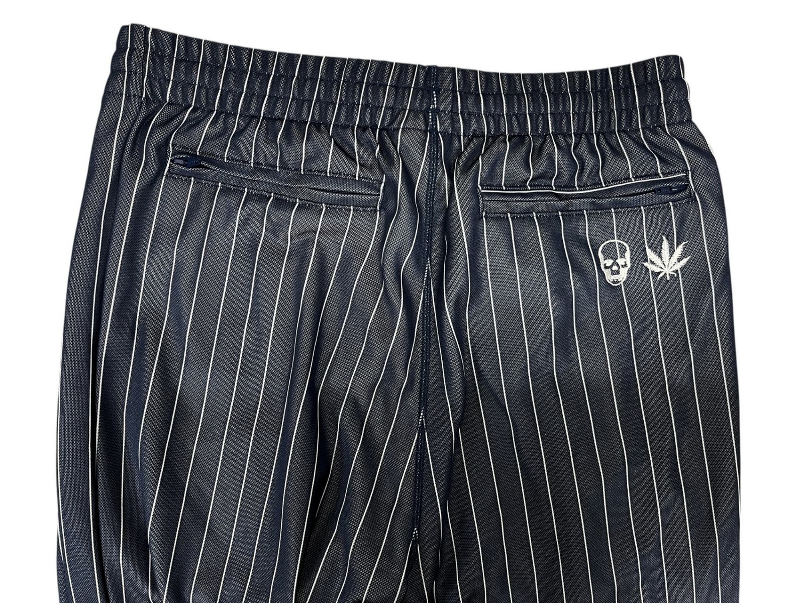 lucien pellat-finet ルシアンペラフィネ arenaコラボ ヘンプ刺しゅう ストライプ トラックジャケット トラックパンツ セットアップ S ネイビー メンズ|028