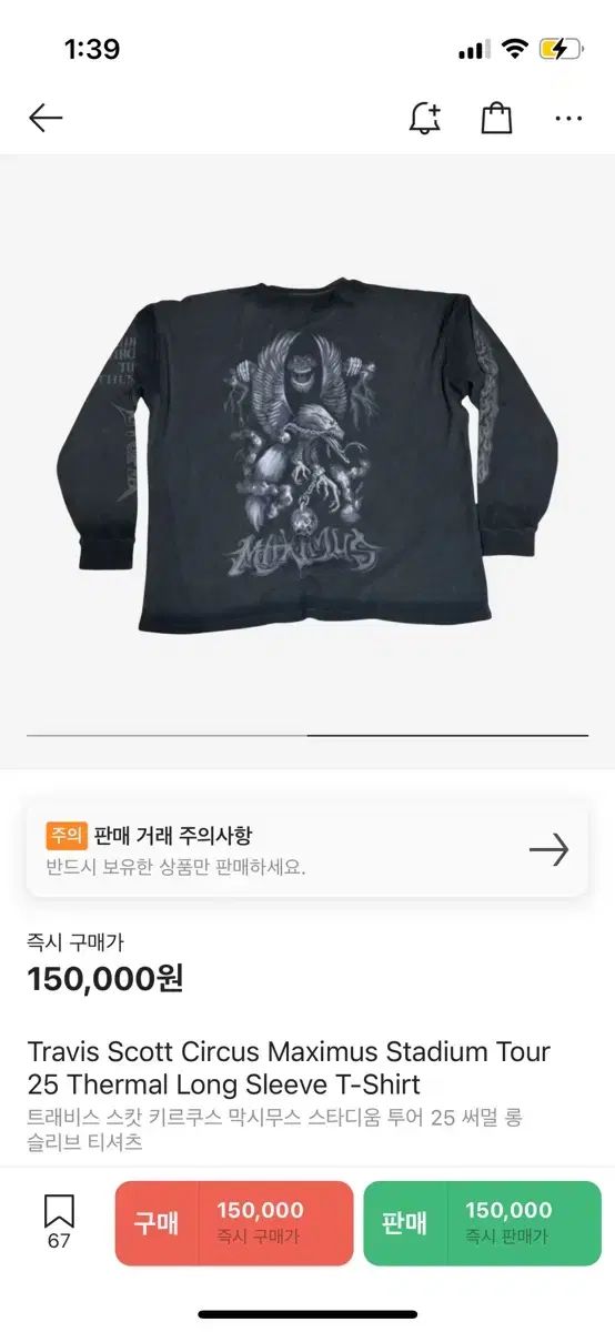 トラヴィス スコット サーマル ロング スリーブ Tシャツ
