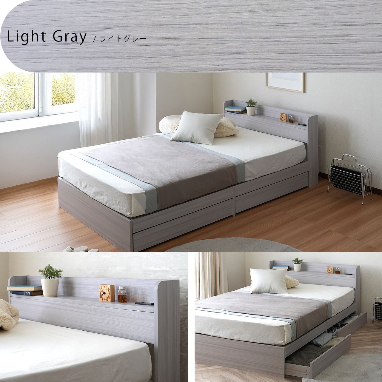 シンプルなデザインでも実用的な多機能をしっかり備えたベッドフレームです。