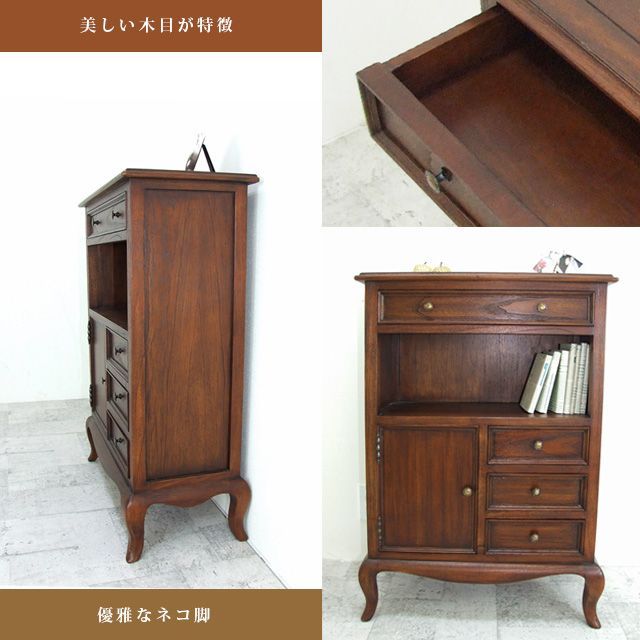 電話台 ファックス台 チェスト アンティーク調 ミンディ 木製 天然木 家具 リビング 収納 棚 本棚 アンティーク レトロ 英国風 プリンセス 姫系家具 ロマンティックプリンセス ロマプリ ロココ調 猫脚 かわいい カワイイ おしゃれ