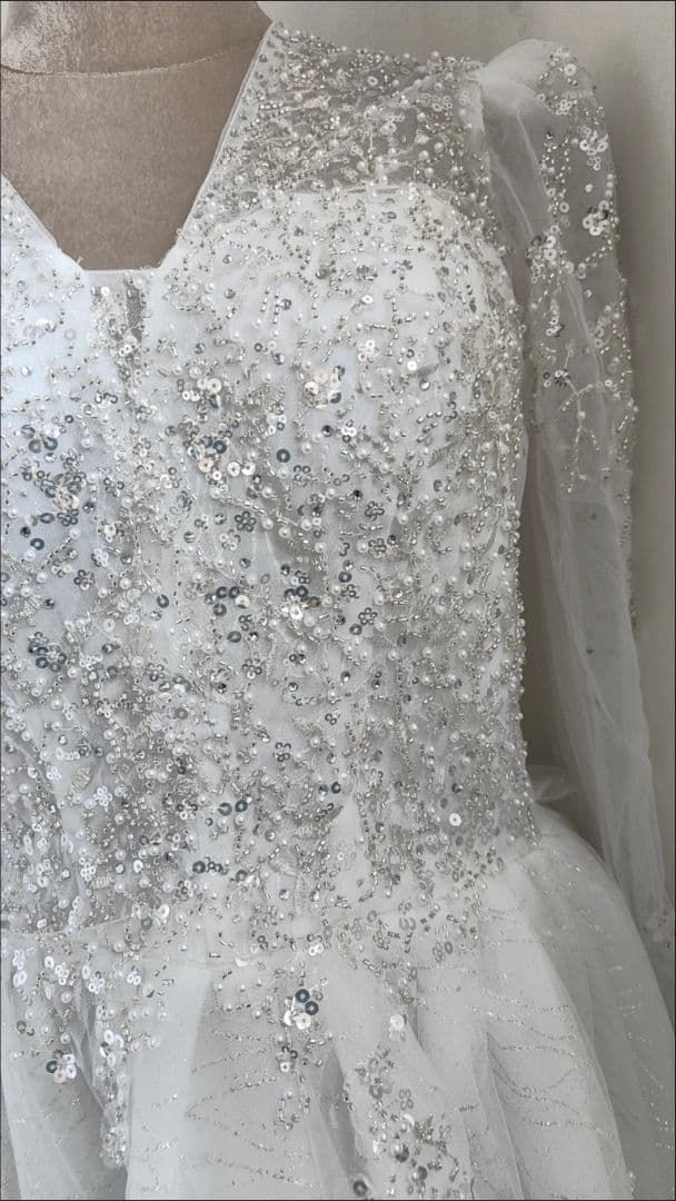 華やかに輝くロングトレーン付きゴージャスウェディングドレス