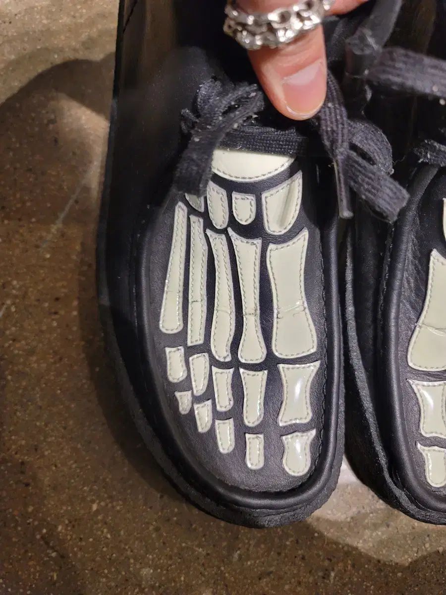 クラークス バンディザピンク スケルトン ワラビー UK9 280サイズです。写真と同様のコンディションで、アウトソールの摩耗等はありませんが、紐に毛玉、そしてスケルトン部分が履く際に折れる部分にダメージがあります。素材の特性上、数回履くだけでもダメージが行く素材です。ボックス等は全て捨ててしまったため、靴のみの単品です。