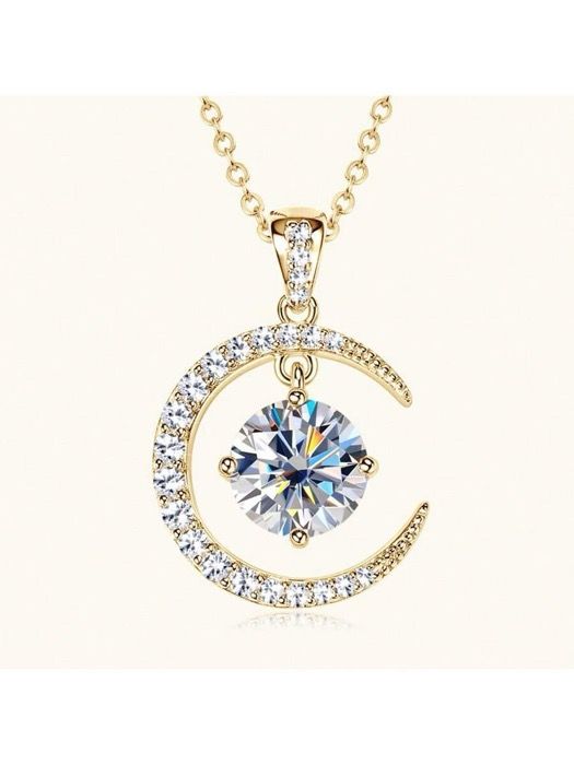 ジュエリー レディース ネックレス ペンダント 925シルバーペンダントネックレス クレセントムーンモアサナイトネックレス 2 CTモアサナイト VVS 1クラリティ ラウンドカット 証明書とギフトボックス付き
