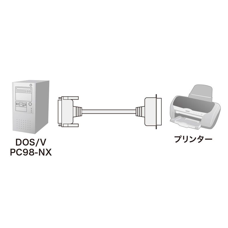 ●DOS/Vパソコンとプリンターを接続するケーブルです。プリンター切替器・バッファとも接続可能で、双方向通信に対応しています。