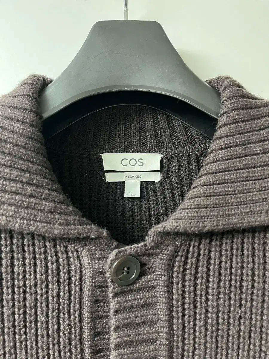 COS リブド ウール カーディガン ブラウン カラー S サイズです。 緻密な編み目で高級感のある感じを与えます。 カジュアルにコーデするにも良いカーディガンです。