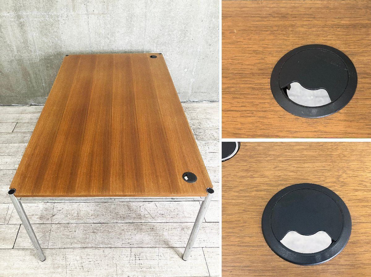 ■システムキャビネットで世界的に知られる USMハラー が手がけた「ハラーテーブル」。 シンプルな構成とミニマルなデザインながら、どこかエレガントさを漂わせる、非常にモダンなテーブルです。 オフィス用デスクとしての印象が強い一方で、ヨーロッパではダイニングテーブルとしても広く愛用されています。 機能性と洗練された美しさを兼ね備えた、時代を超えて選ばれる一台です。