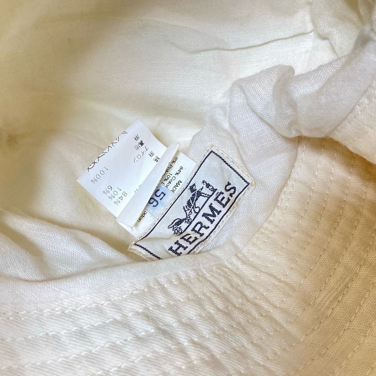 HERMES エルメス ハット 56 - アイボリー コットン リネン