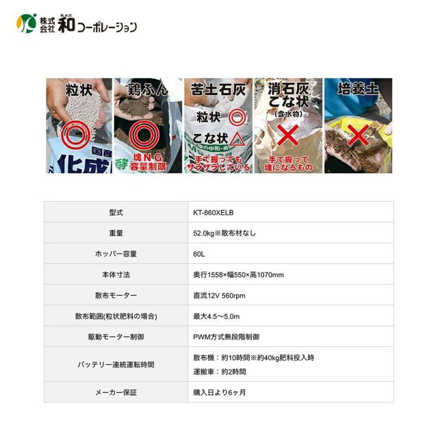和コーポレーション KAZ 電動肥料散布機 撒きざんまい 4輪タイプ ホッパー容量60 L KT-860 XELB