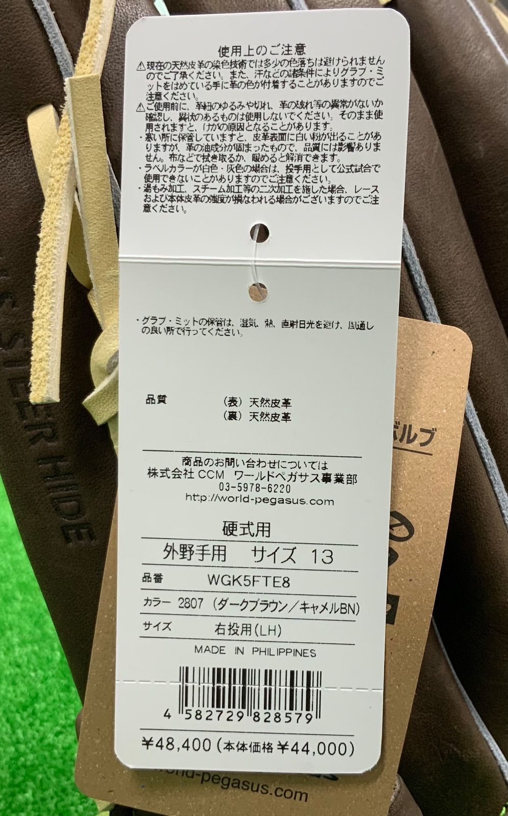 ? 40%OFF ワールドペガサス硬式用グラブ右投外野手用 サイズ13 32 cm