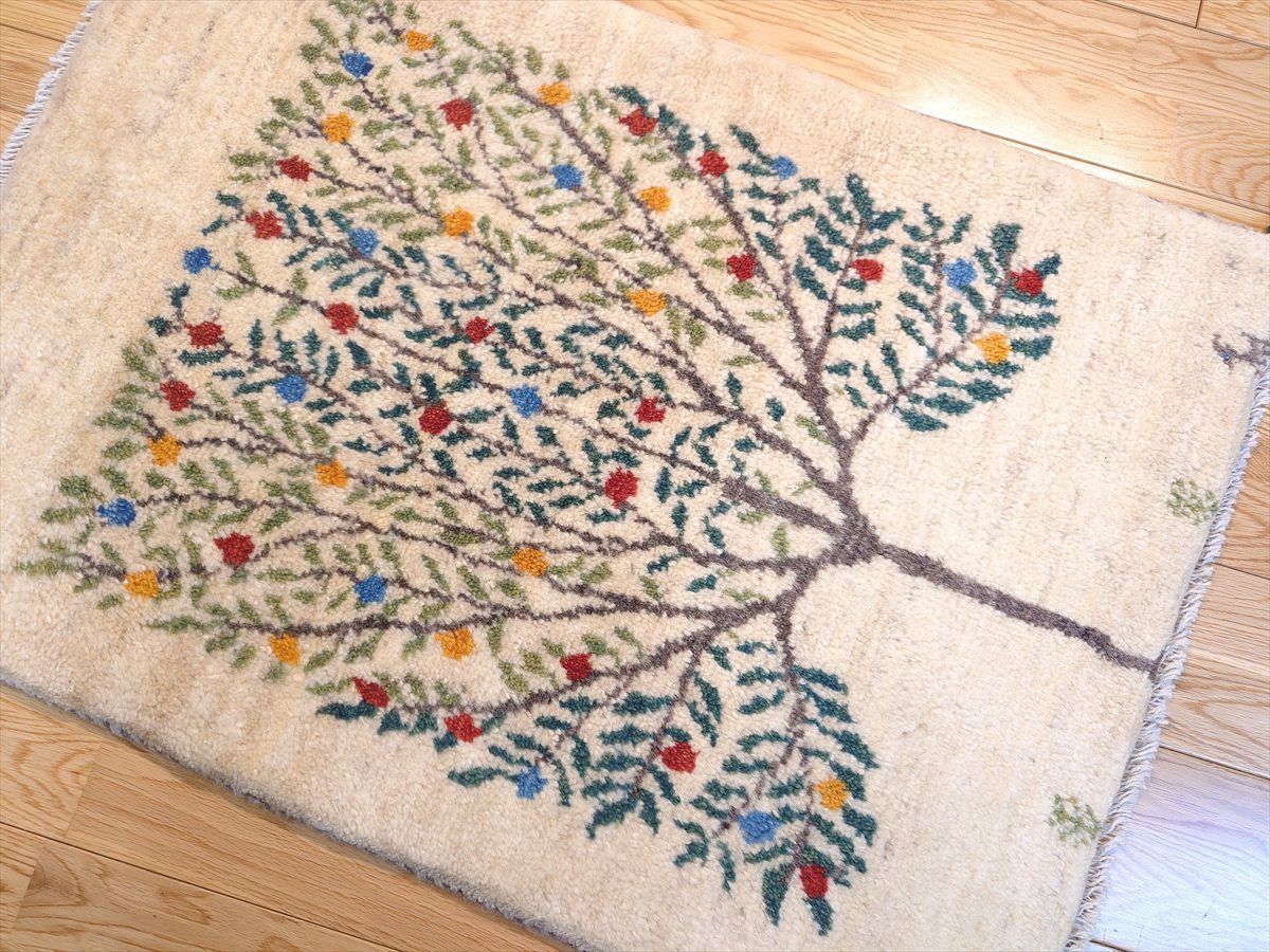 ペルシャ ギャッベ 玄関マット ラグ ㎝ アイボリー 生命の木 RJ 14641