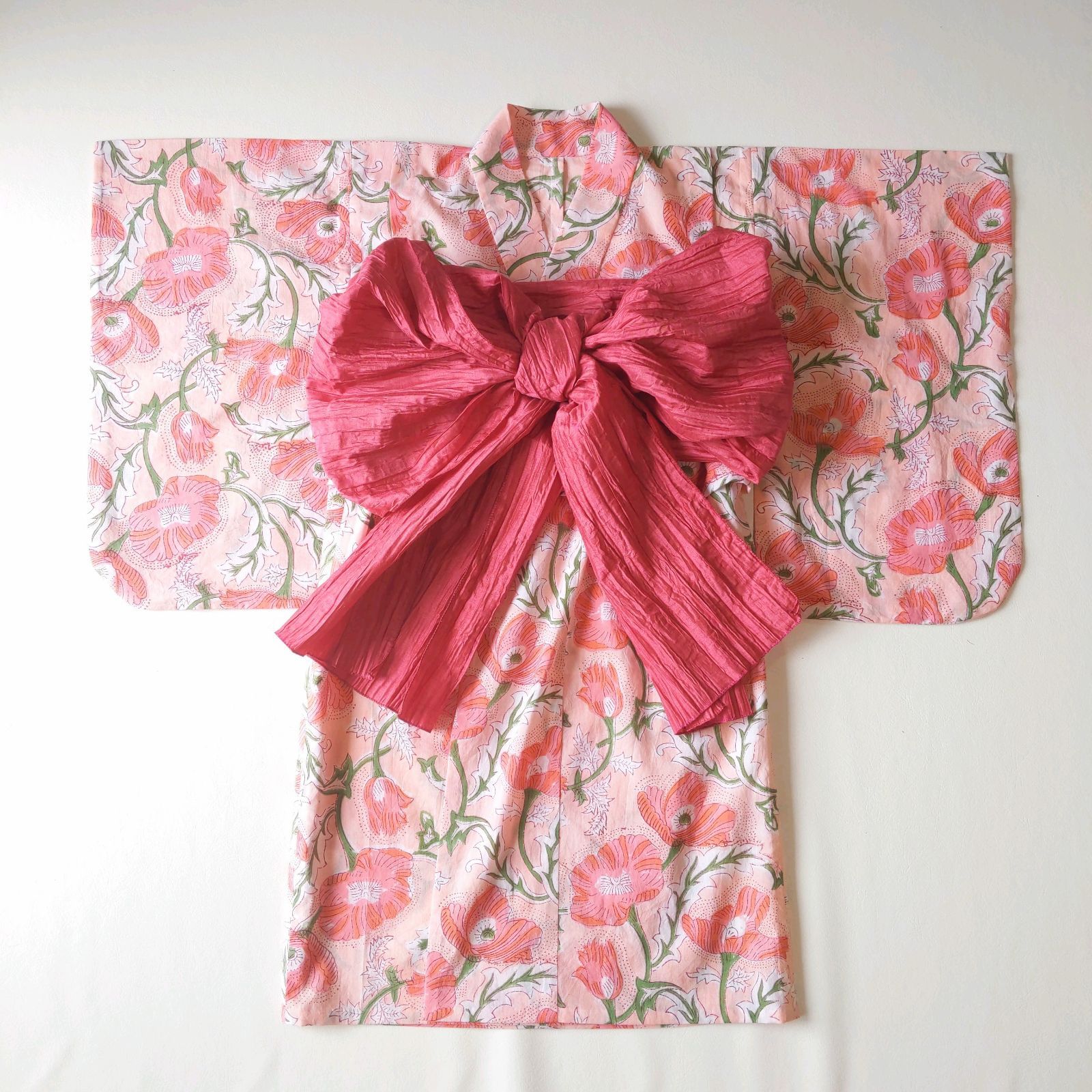 サーモンピンクの浴衣と兵児帯のセット